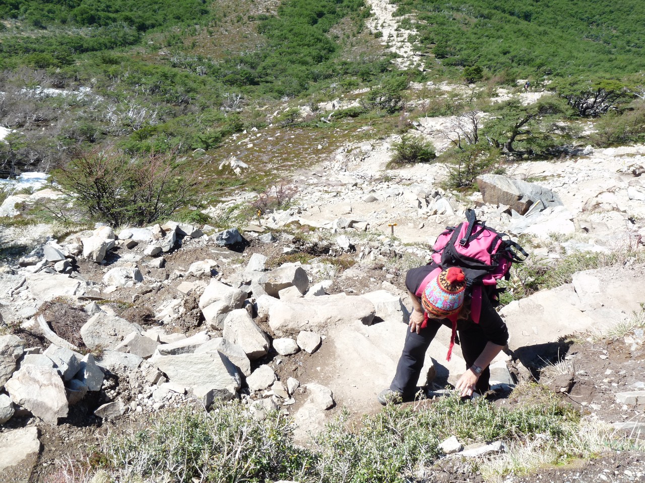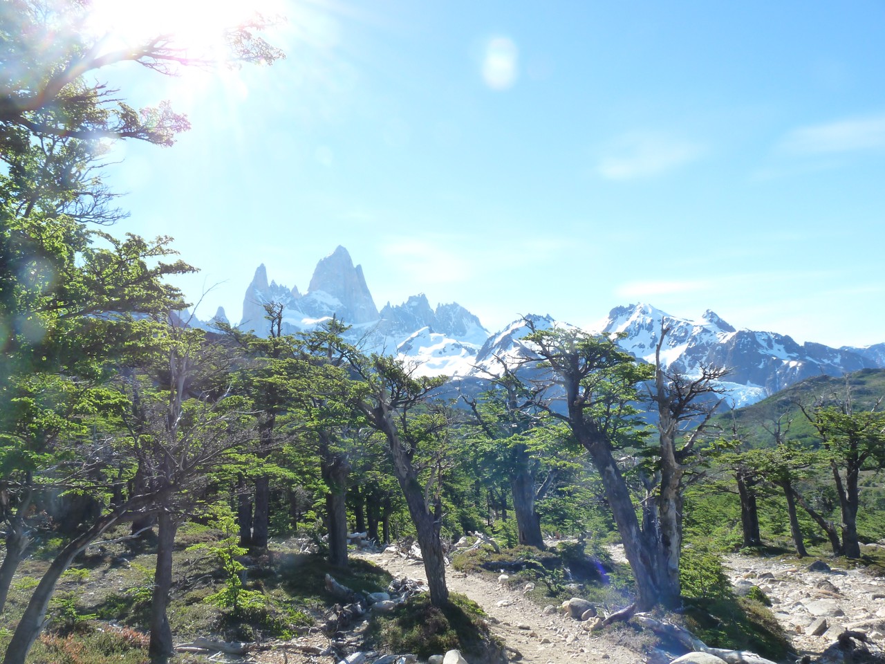 Dès que nous prenons un peu de hauteur, nous évoluons dans un paysage de toute beauté : l’étape du jour nous conduit aux pieds du Fitz Roy.