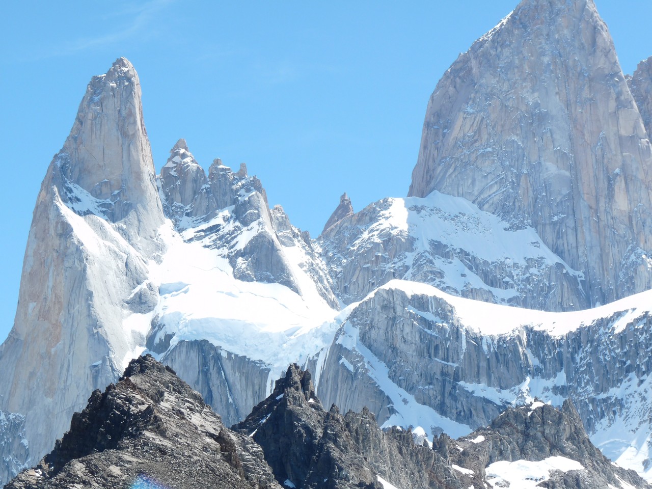 Nous voici partis pour l’ascension du Fitz Roy dont le sommet ne culmine qu’à 3405 m. C’est cependant une montagne qui est considérée, encore aujourd’hui, comme une des plus difficiles au monde en raison des conditions climatiques, des vents violents et de ses pentes raides.
