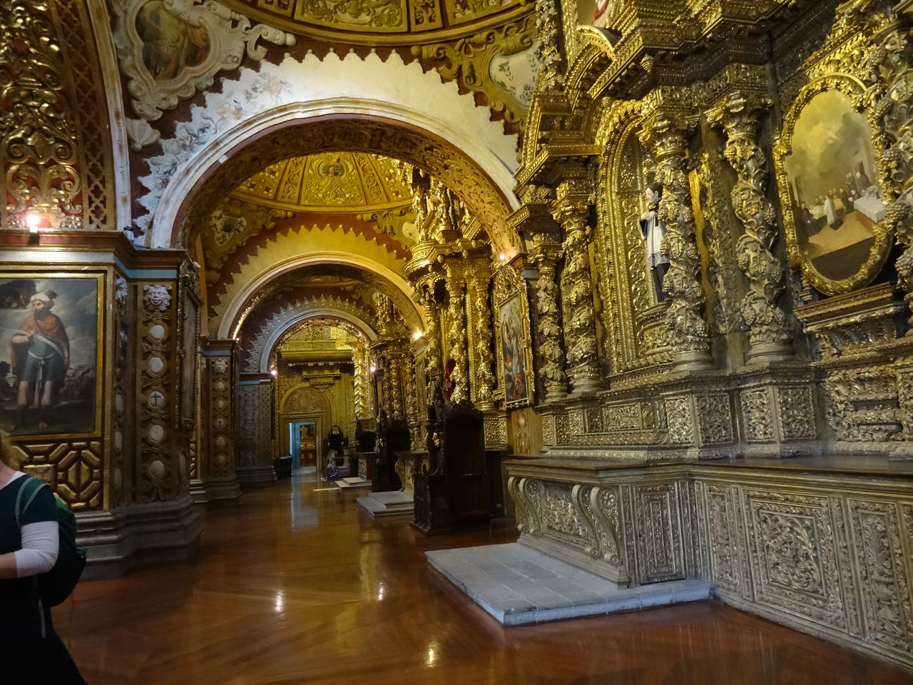 Nous visions les églises San Francisco, l’iglesia Santo Dominique et là il nous chante «Dominique, nique, nique….) une messe est dite l ors de notre visite et c’est le moment où les fidèles se serrent les mains et il en fait de même avec nous.Après la calle de la Ronda, nous irons ensuite admirer la « Compania » de la compagnie des Jésuites dont l’intérieur est couvert d’or, très impressionnant et très beau.