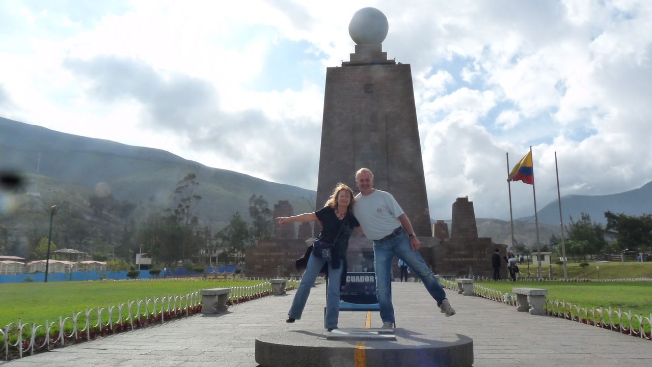 Nous dégustons un délicieux chocolat et un grande cerveza pour Yves dans un bar restaurant où nous avons été racolé par un Haitien avec lequel nous avons parlé un moment Français. Quelques boutiques d’artisans où nous avons acheté un souvenir du milieu du Monde pour les petits bouts et nous nous dirigeons vers le musee de Inti Nan là où passe la véritable ligne de l’Equateur. Comme précédemment nous pénétrons par une porte entrouverte et commençons à prendre des photos lorsque un garde s’avance vers nous muni d’une matraque. Je lui dit non non de ne pas nous frapper, il rigole…Il ne comprend pas pourquoi nous avons pu rentrer alors que c’est fermé mais il se prête au jeu et fait des photos.Nous reprenons le car en sens inverse puis à pieds jusqu’à l’hotel mais après un tour du parc nous prenons un taxi.