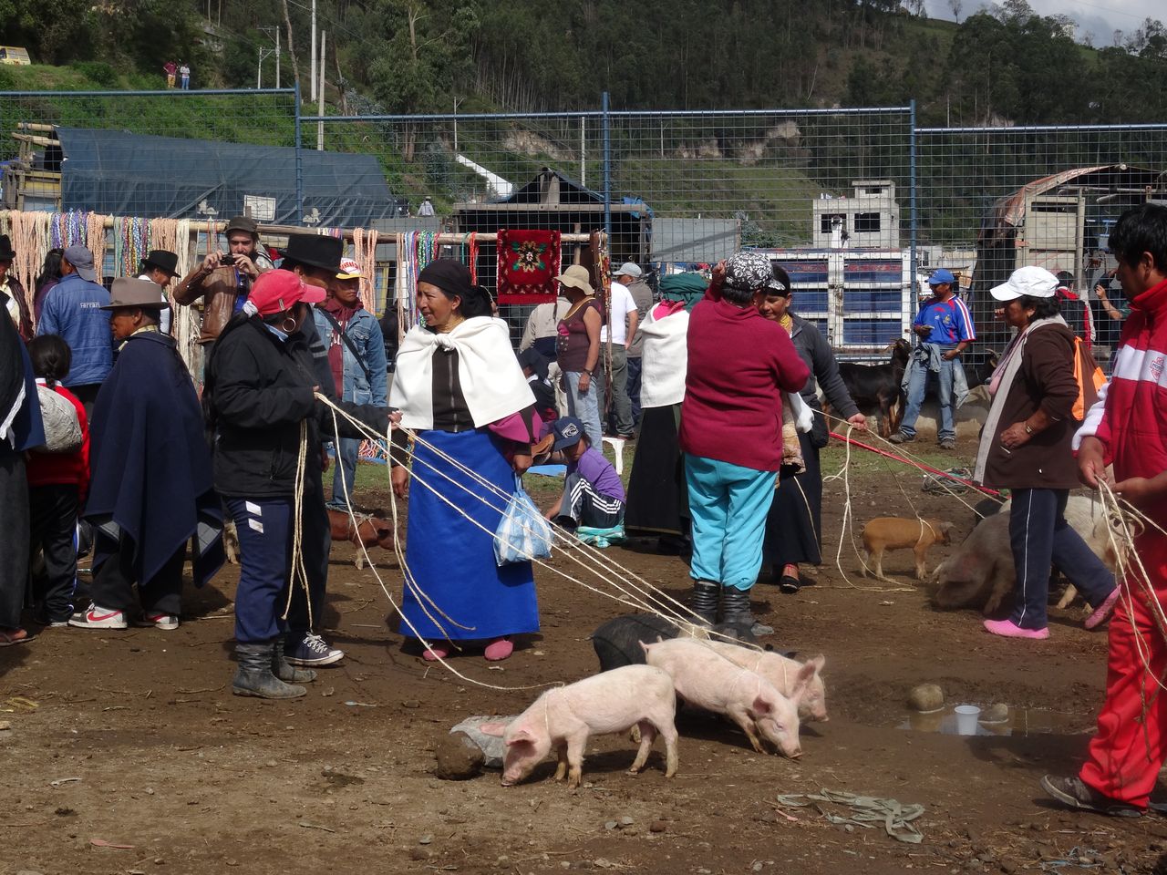 Direction marché des artisans où nous commençons par déguster des jus de fruits frais « sin agua ». Nous voici plongés dans la plus grande authenticité équatorienne (environ 30 fois Mirepoix) et beaucoup plus coloré !