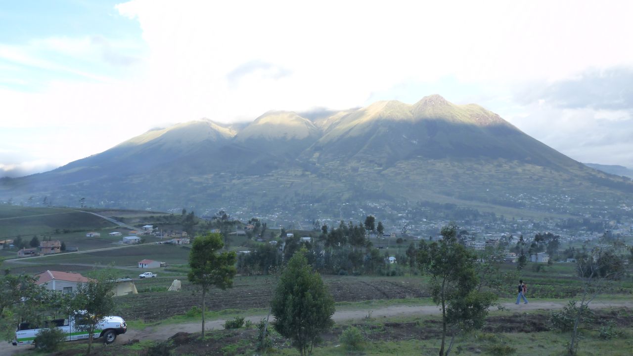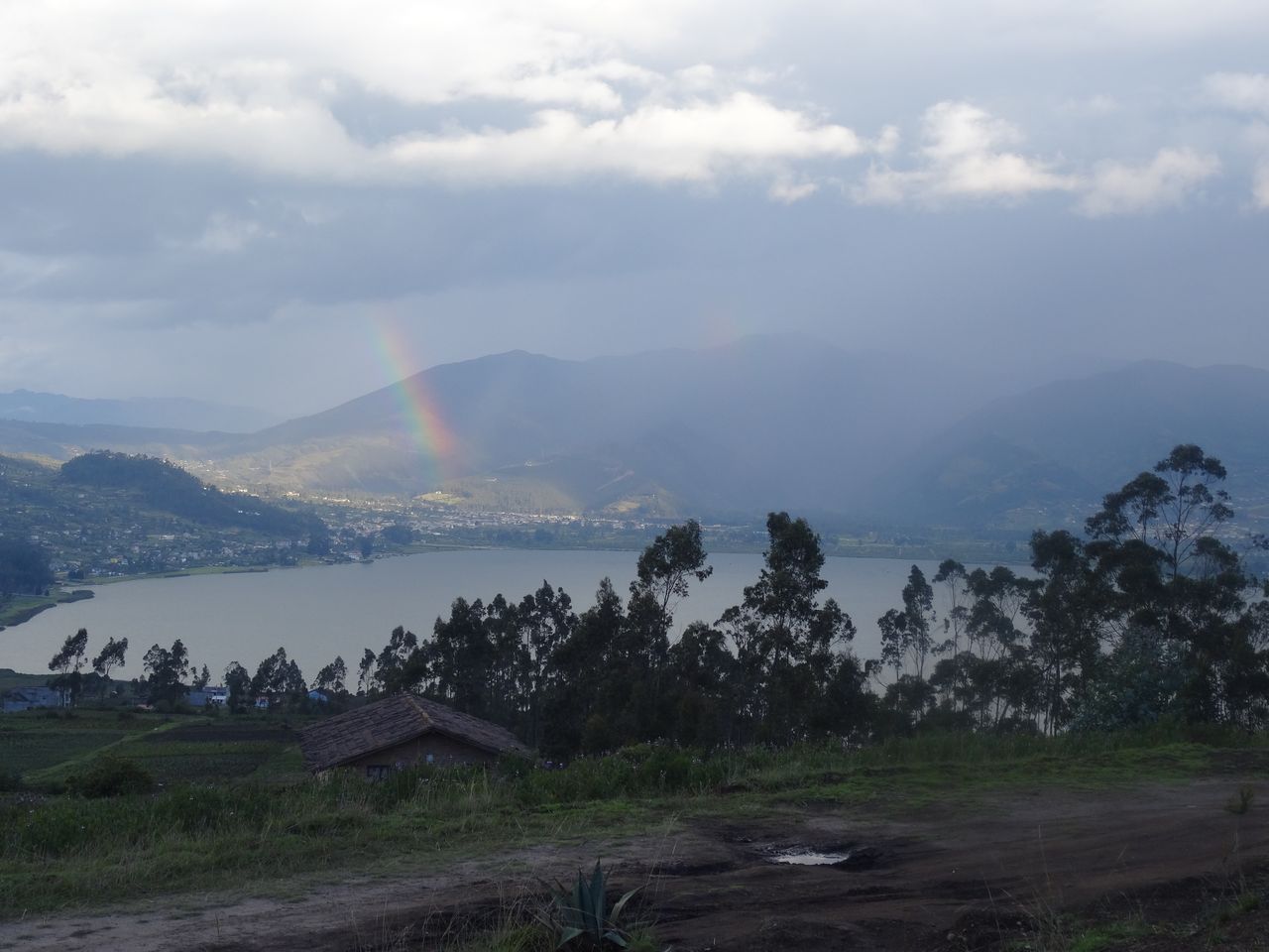 Nous avons une magnifique vue sur le lago San Pablo auréolé d’un arc en ciel.