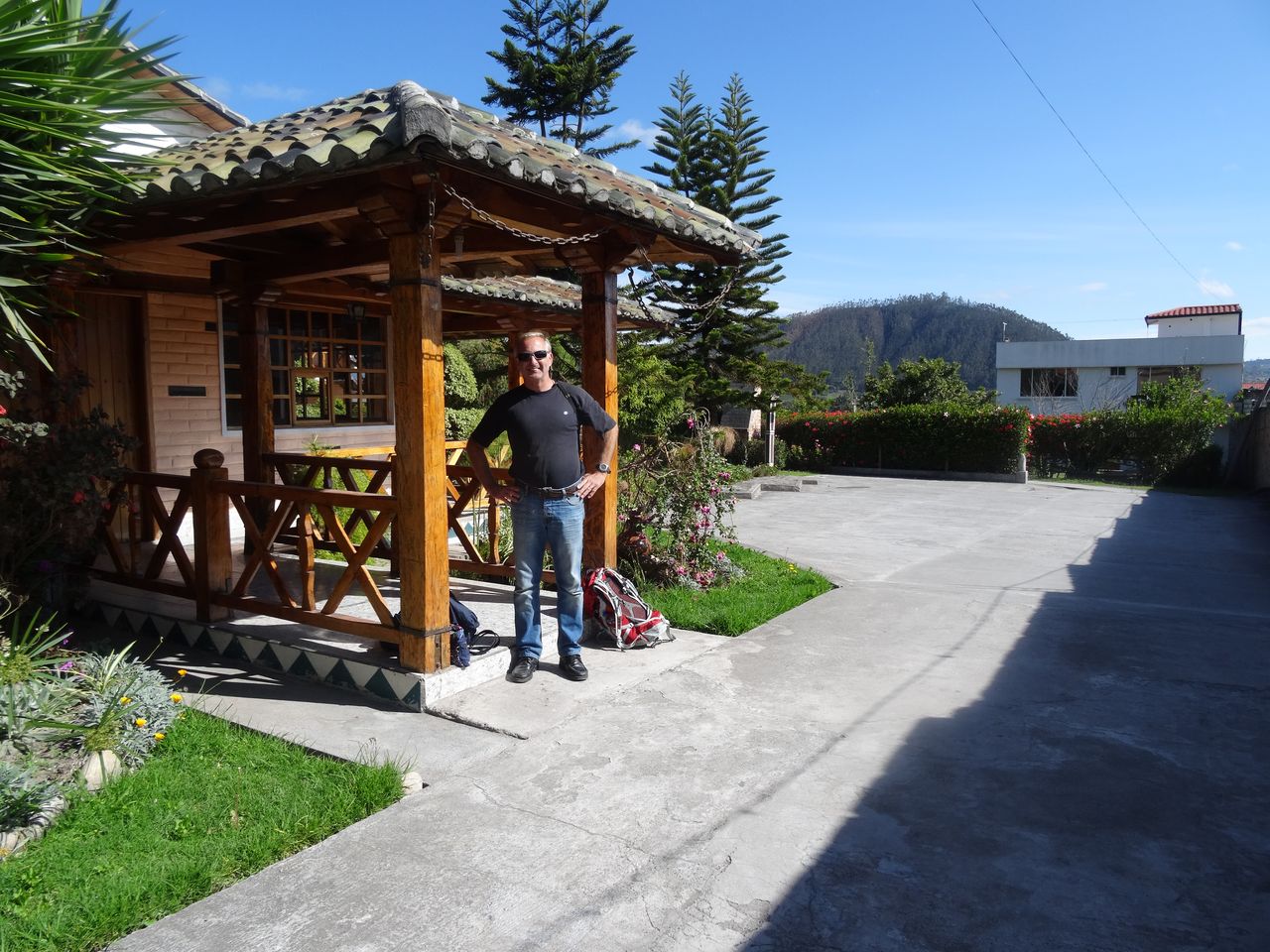 Nous quittons les Cabanas del Rocio d’où, du pas de porte, nous avons une vue sur le Cotacachi,, le Fuya Fuya et l’Imbabura. Comme il nous l’avait dit, Claudio vient nous chercher. Il a