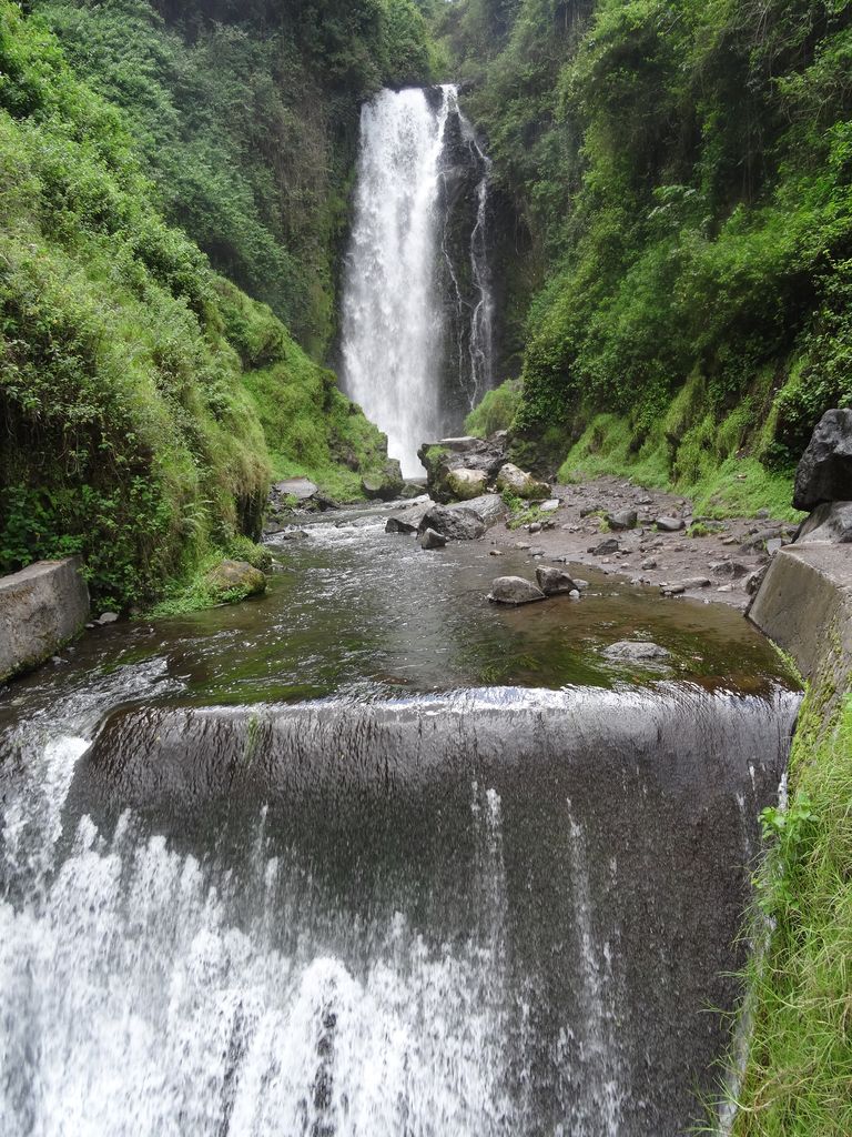 20 minutes de retard. Il nous conduit en taxi jusqu’à l’arrêt du bus et il descend avec nous ; plusieurs vont passer qui sont complets. Enfin nous montons dans un qui s’arrête mais il ne fait pas le terminal de Quitumbe, il faudra donc changer à Quito. Le transfert se fait au pas de course en faisant comme tout le monde. Le chauffeur nous montre une femme d’un certain âge qui va au même endroit que nous, elle doit charrier deux grands sacs , dans la foule nous la perdons rapidement. Nous suivons un autre jeune traversons la passerelle et nous arrivons juste à temps. Le sac de Yves sera chargé dans la soute, je devrais garder le mien et nous finirons le trajet debout pendant les ¾ du trajet restant. La femme quant à elle nous la retrouvons confortablement assise à l’avant du car !