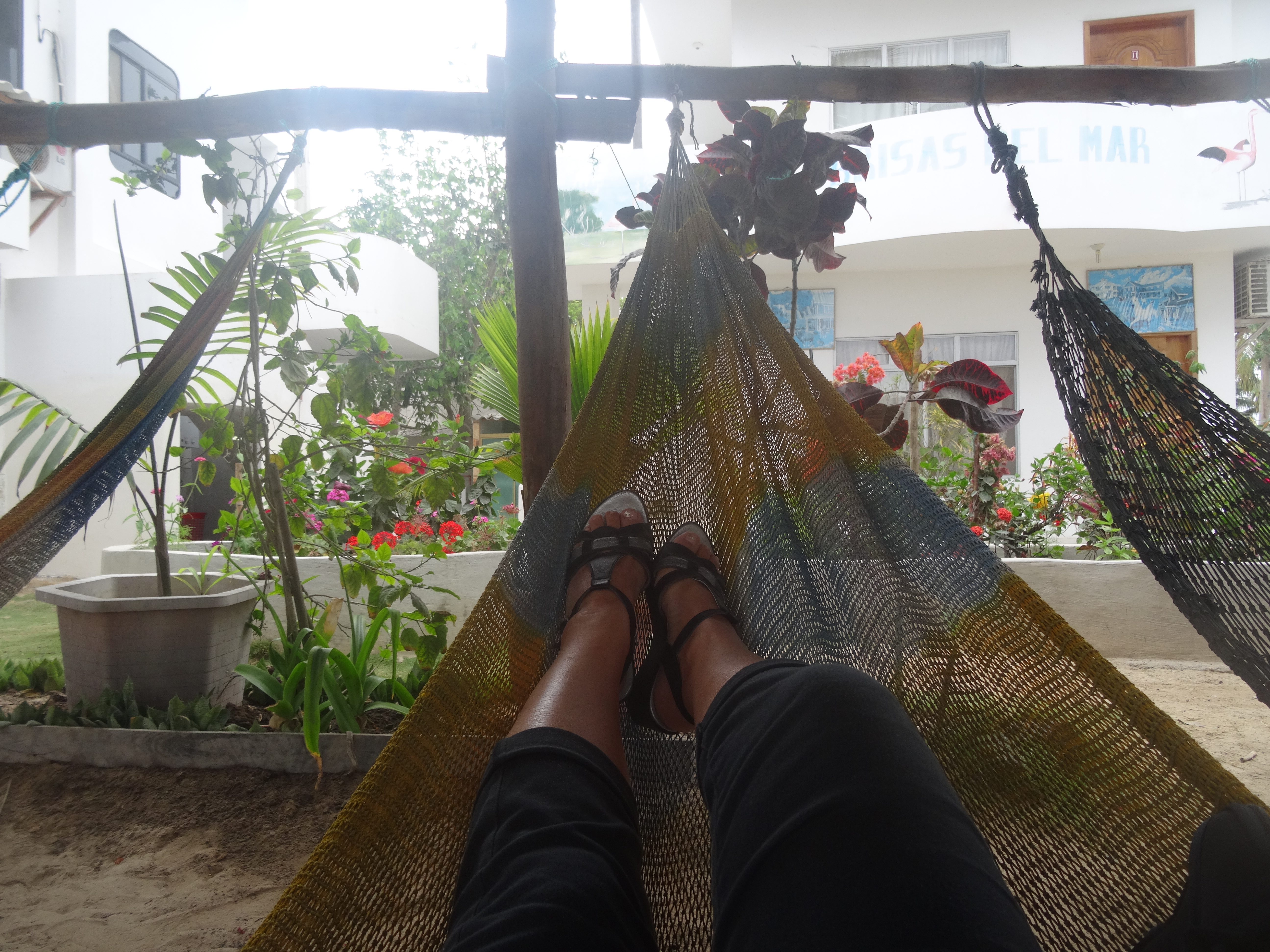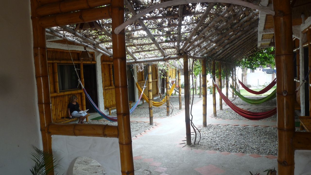 Nous prenons le bus en direction de Ayangue où nous prenons possession de notre nouvelle demeure : hospidaje el Ohim, bâtie uniquement en bambou jusqu’au pied du lavabo. Atmosphère très agréable petite cour aménagée et avancées avec hamacs. Nous sommes dans une crique directement en front de mer.