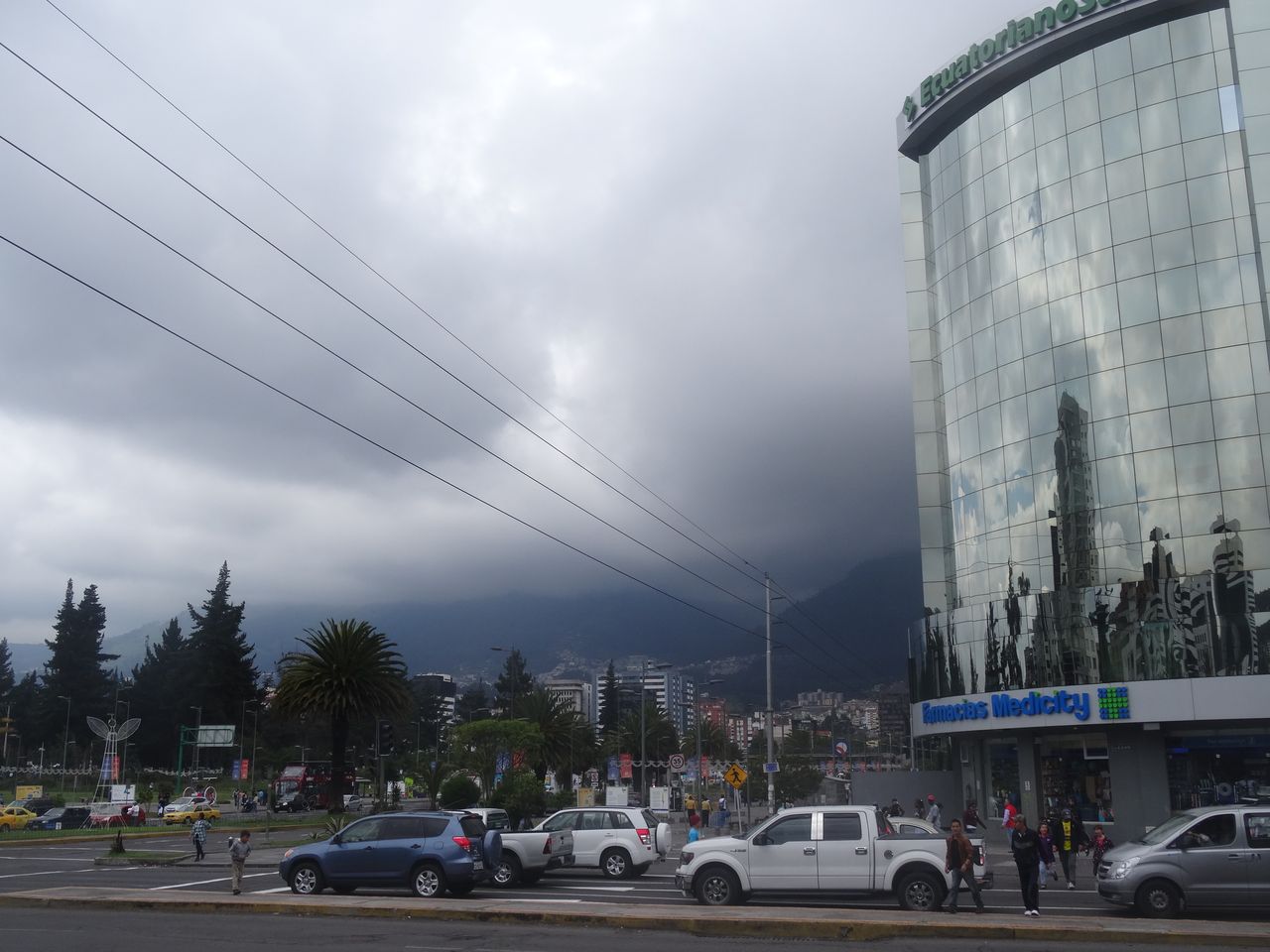 Après une courte nuit, fête et musique très tard dans la rue, nous sommes à l’arrêt convenu à 4 h40 . Un car est stationné et le chauffeur nous dit que le direct pour Quito est parti à 4 h 00 : dit-il cela pour nous prendre dans sa compagnie où les infos qui nous ont été données hier sont elles fausses ? Nous montons donc dans celui pour San Domingo : une heure de trajet ; à peine le temps de prendre le billet que le car pour Quito manœuvre pour le départ. Nous n’avons pas perdu de temps : à 8 h 30 nous sommes au terminal de Quitumbe. Nous prenons le bus de ville pour nous rendre à l’auberge inn que nous avons réservé hier. Nous tentons une nouvelle connexion sans succès, avec Lan, nous n’arrivons pas, depuis hier,  à faire les enregistrements de vol. Nous nous rendons donc à leur bureau, l’enregistement est fait et les places sont réservées mais nous ne pouvons savoir où elles sont situées dans l’avion …. On verra demain