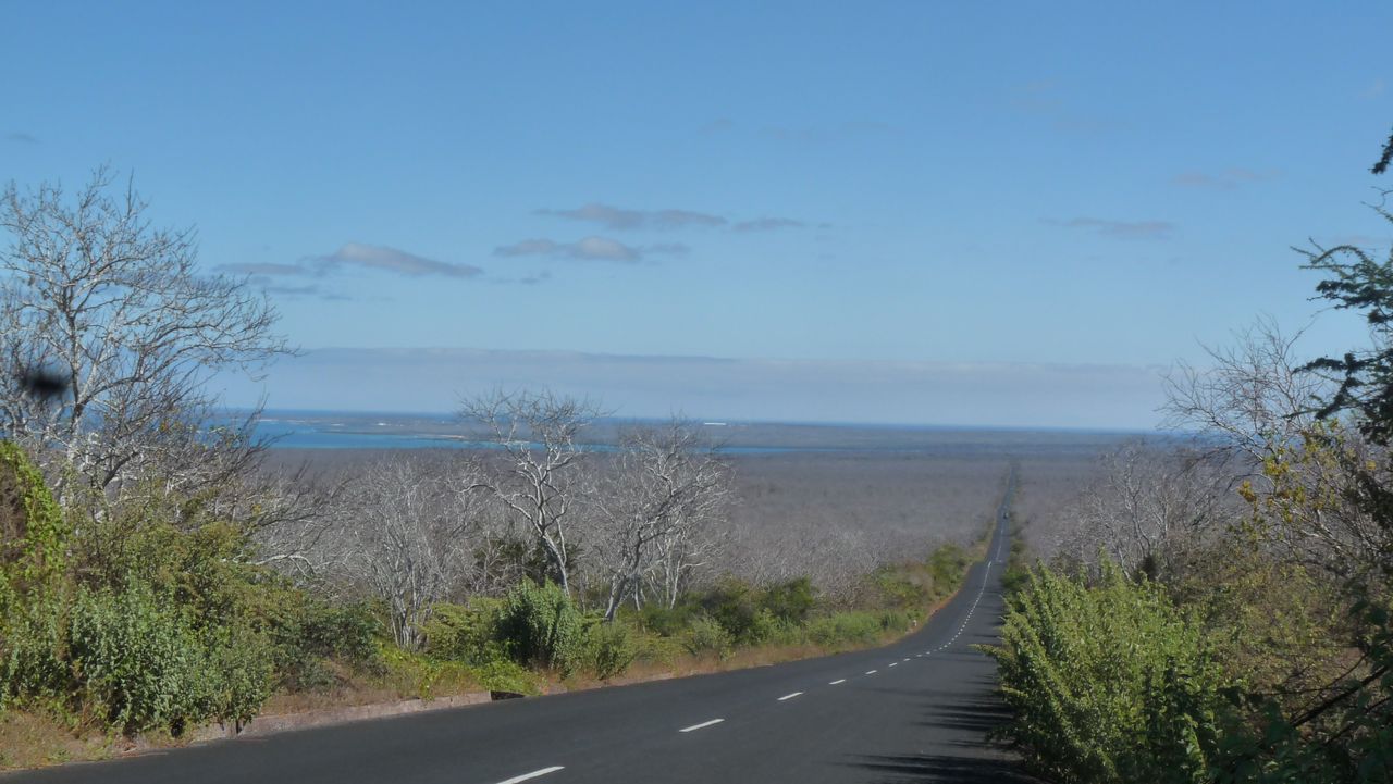 Nous nous rendons aux Gemelos, volcans jumeaux, situés de part et d’autre de la route. Dix sept kilomètres en ligne droite nous séparent du bac pour Baltra. La traversée est rapide et le bus prend le relai pour nous amener à l’aéroport.