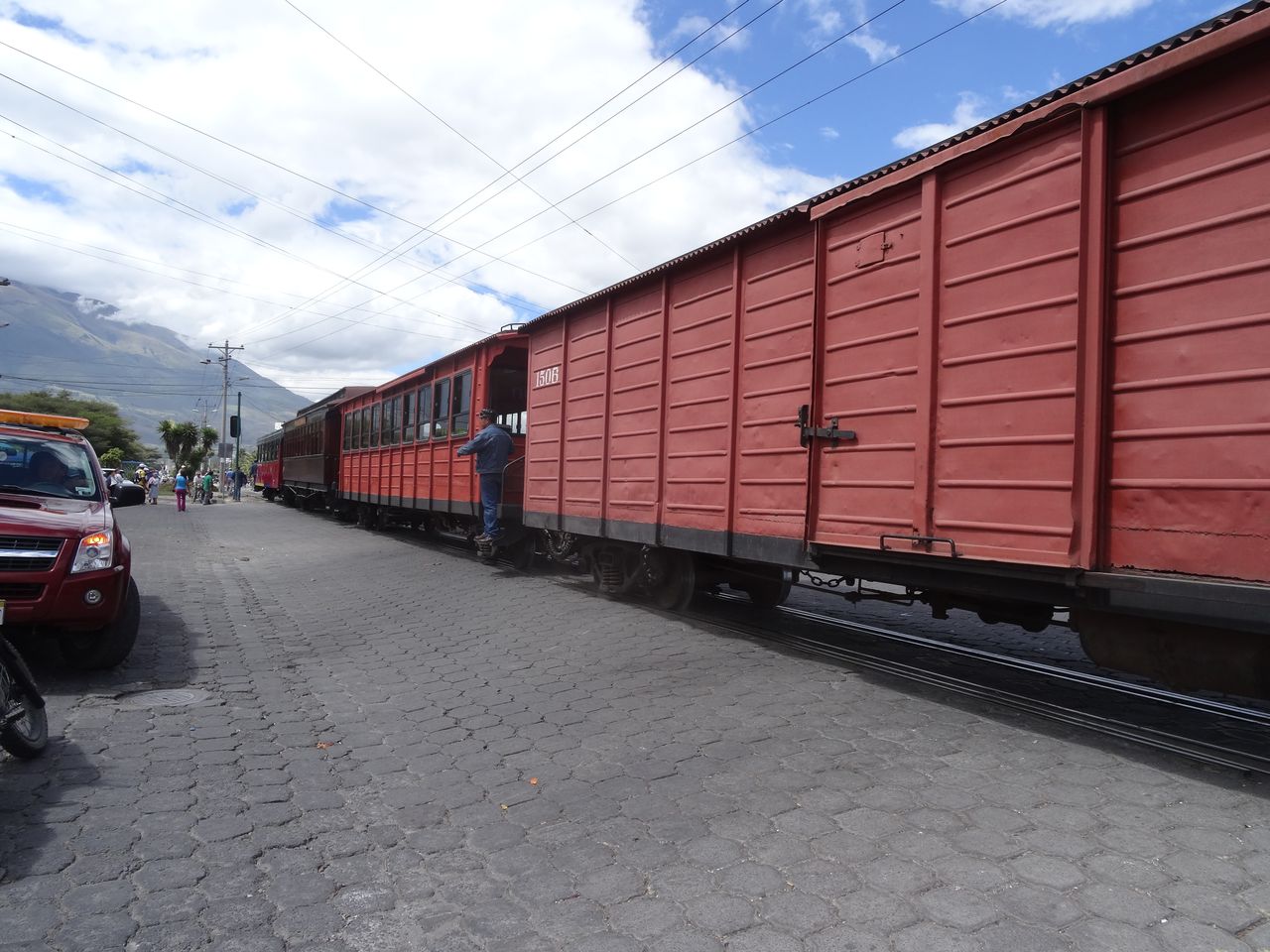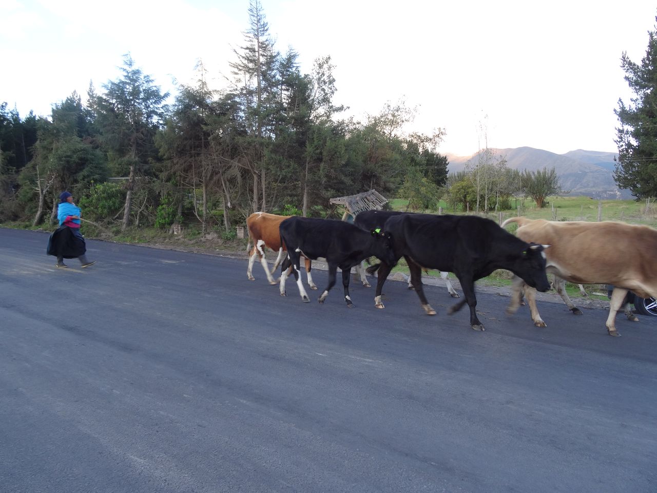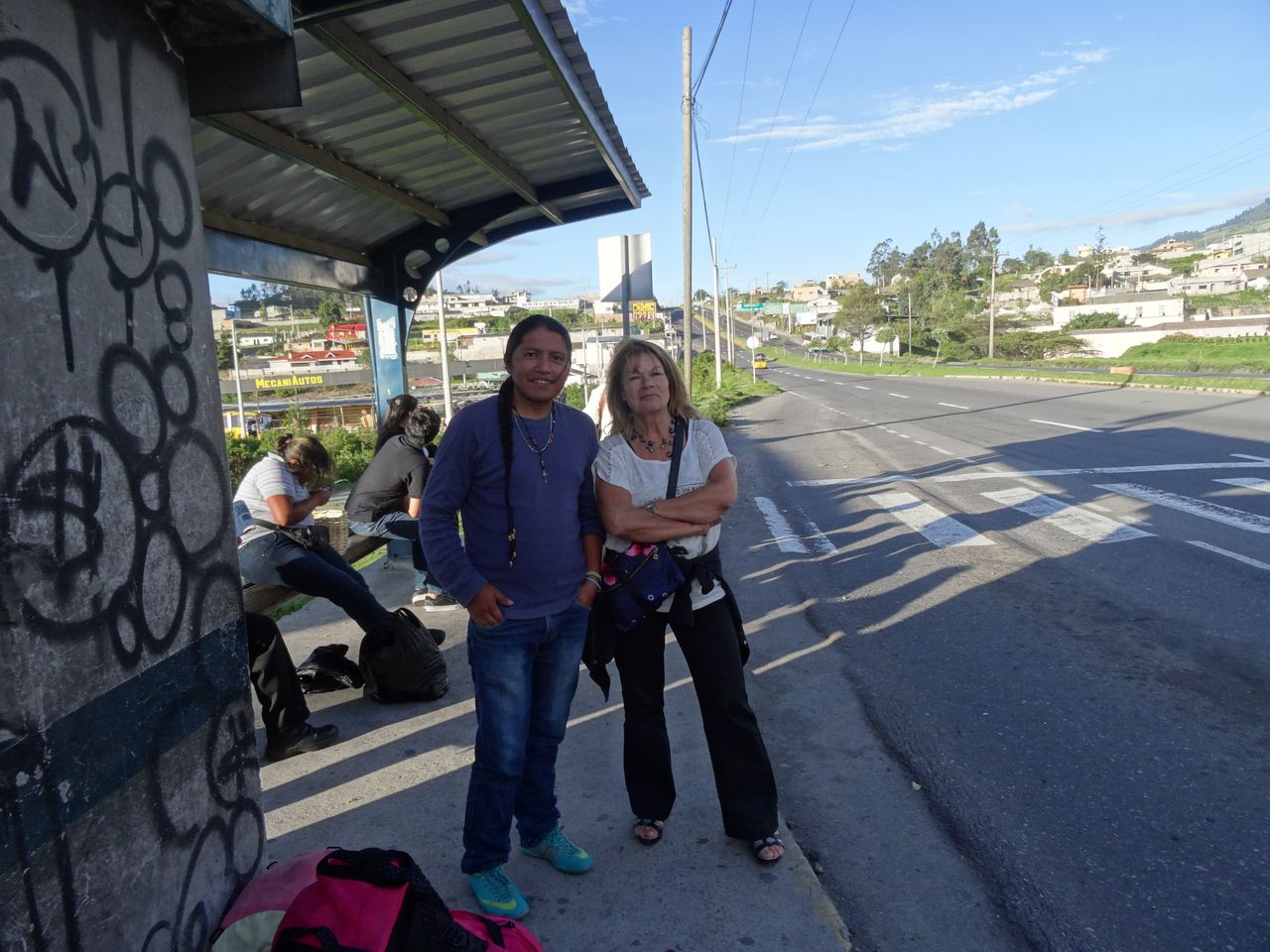 peine sortis de l’hotel nous apercevons le bus et l’arrêtons sur la route nationale : nous devenons de vrais locaux. 1,50 $ pour Cayambe.