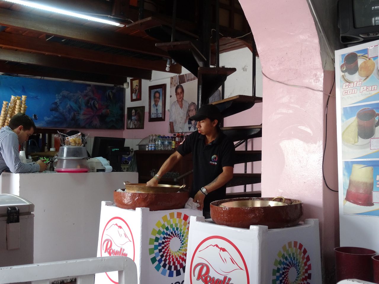 puis par la fabrique « San Pablo » de bizcochos. Dans cette petite industrie familiale, la pâte est étalée sur la table, les ouvriers assis tout autour la pétrissent,