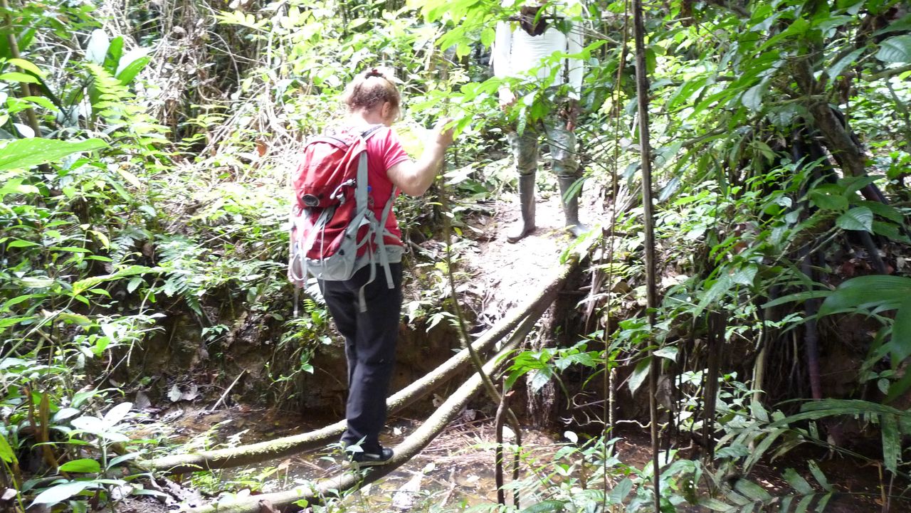 revendiquée comme étant la vraie ligne de l’Equateur. Le Guide nous fait des démonstrations à l’aides de cartes, d’un hémisphère, de croquis de la voie lactée,de lignes d’ombre pour démontrer que c’est ici la vraie moitié du monde.