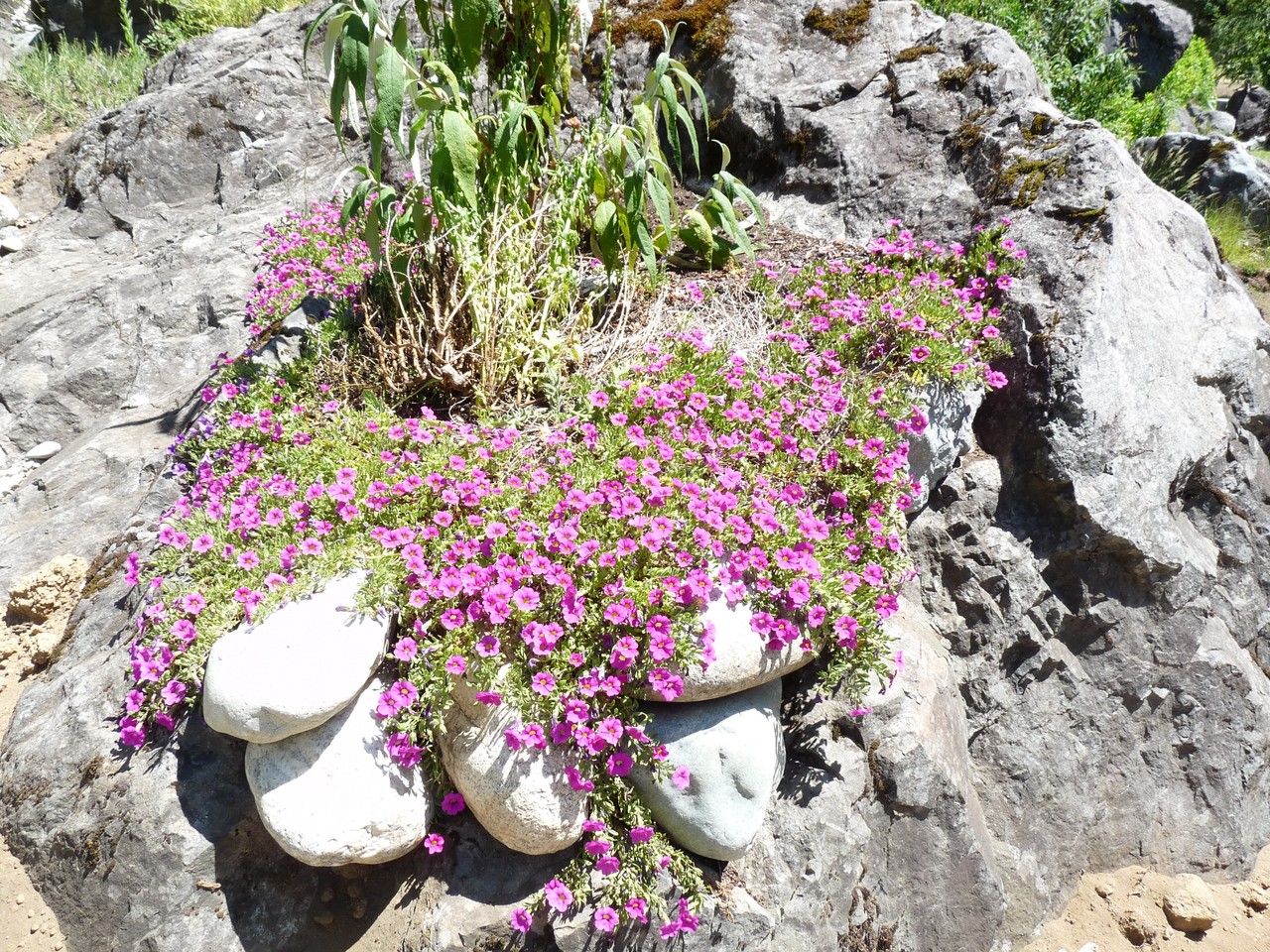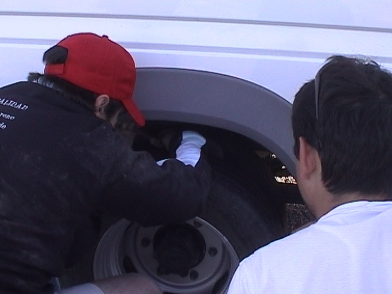 Partis depuis environ 45 mn, il semble qu’une roue du minibus soit crevée…en fait, il s’agit d’un caillou qui s’est coincé entre la double roue, plusieurs personnes prêtent assistance pour dépanner.