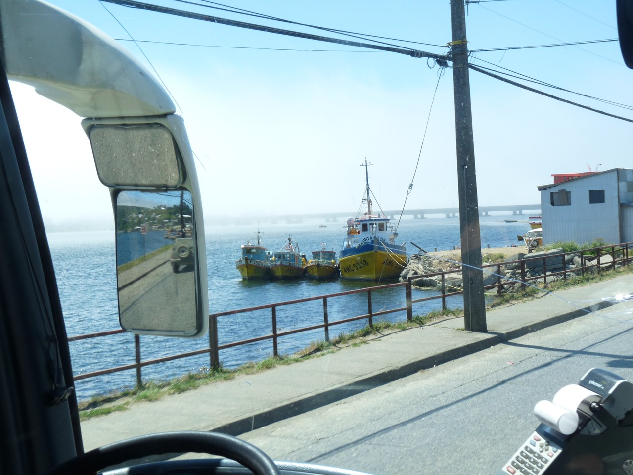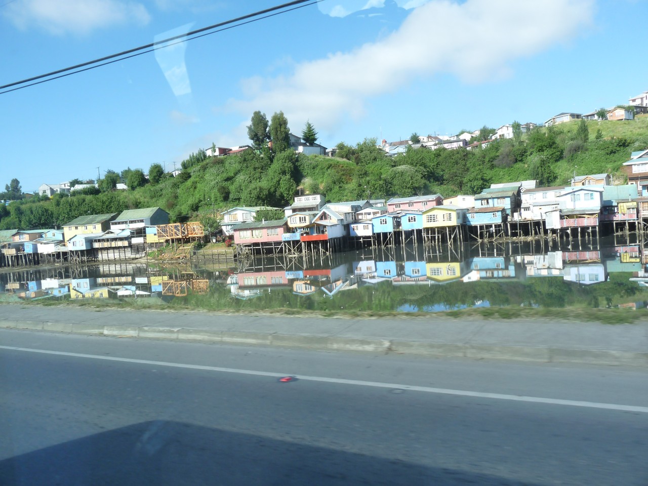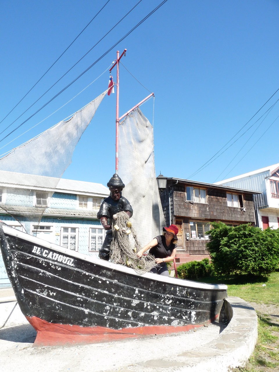 Nous nous renseignons  sur la raison pour laquelle il n’y a pas de lumière dans le village depuis notre arrivée ; il s’agit d’un incident et la desserte en électricité ici est sporadique nous dit-on  ; lorsque  nous partirons vers 15 h elle n’a toujours pas été rétablie. Nous lézardons sur un banc en attendant le car qui nous amènera à Puerto Montt où nous nous promènerons dans une autre partie de la ville, plus agréable celle-là…