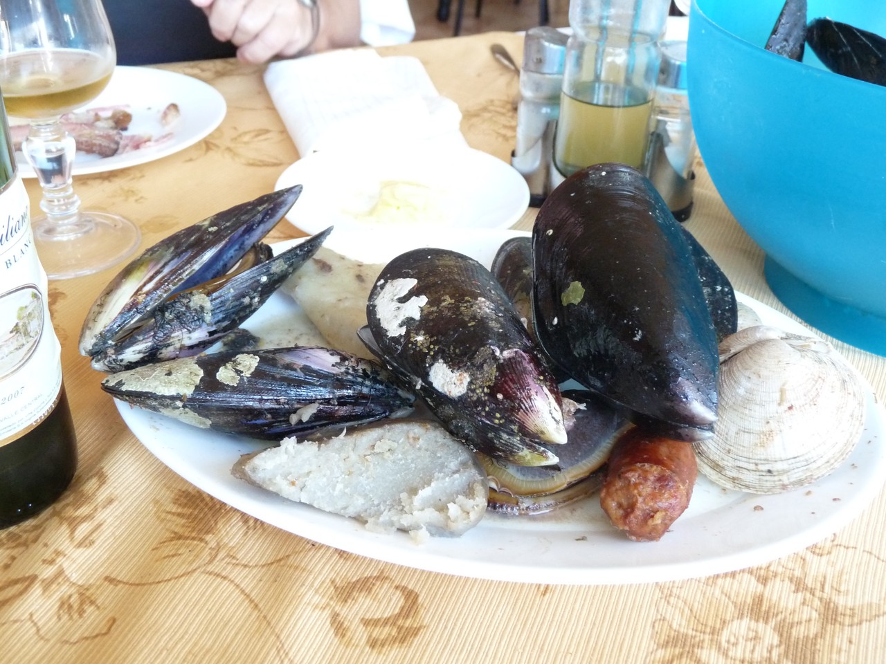 Nous mangeons dans un petit resto sur pilotis en bordure de mer mais nous ne renouvellerons pas l’expérience des moules et palourdes. Nous nous régalons avec le poisson frit.