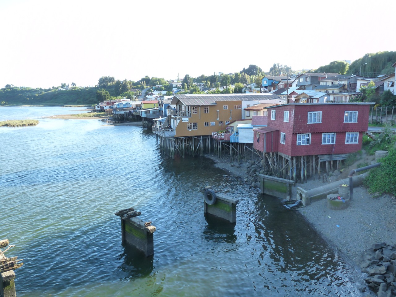 Nous nous dirigeons à pied vers les maisons sur pilotis : «palafitos», dommage que la marée soit basse. Un petit coucou a Roberto pour les chalets de Gruissan.
