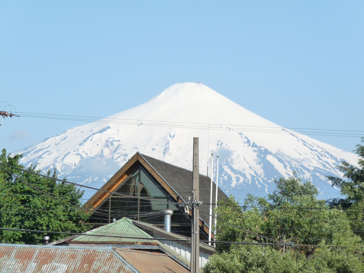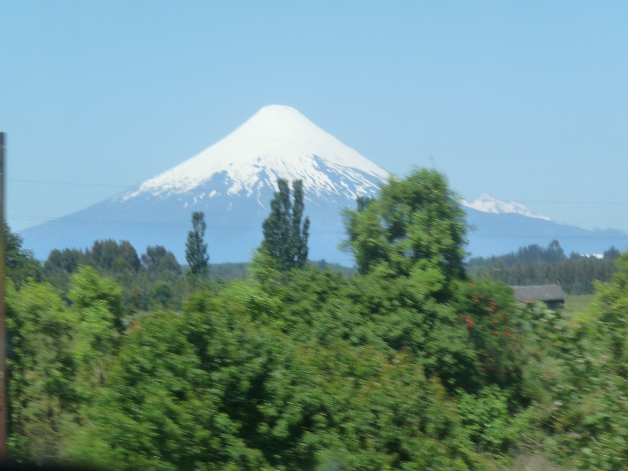 Nous avons choisi cette destination d’abord parce qu’elle nous rapproche de Santiago du Chili mais aussi pour son volcan qui porte le même nom : nous aurons bouclé le circuit puisque nous sommes dans la région des lacs celle dont nous avions pris les photos d’avion à l’aller.