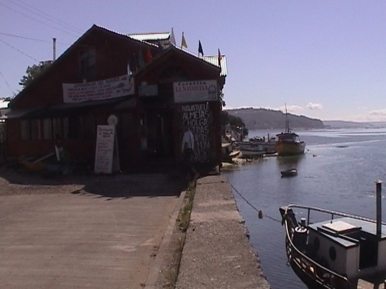 Nous décidons de manger sur le quai des spécialités portuaires  et nous commandons un «curanto» sorte de plateau de fruits de mer avec moules et palourdes géantes et «paila marina» mélange dans le jus de cuisson de moules, de saumon… nous n’avons pas été conquis : loin de valoir  les fruits de mer de la région Normande !