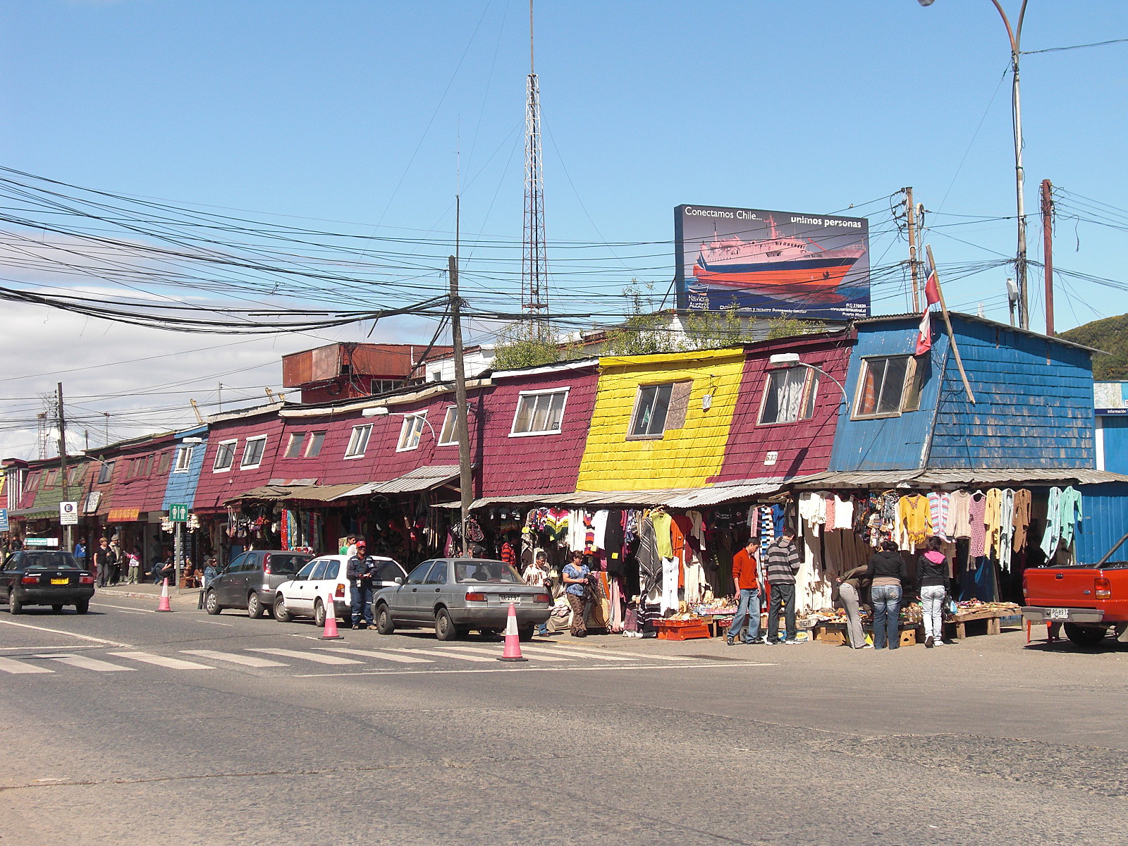 Puerto Montt se révèle être une ville très populaire qui tranche beaucoup avec celles que nous avons traversées jusqu’ici, des camelots tout le long des rues ou dans les galeries, la zone portuaire et tout à côté une grande affluence à la gare des bus qui ne désemplit pas aux alentours.