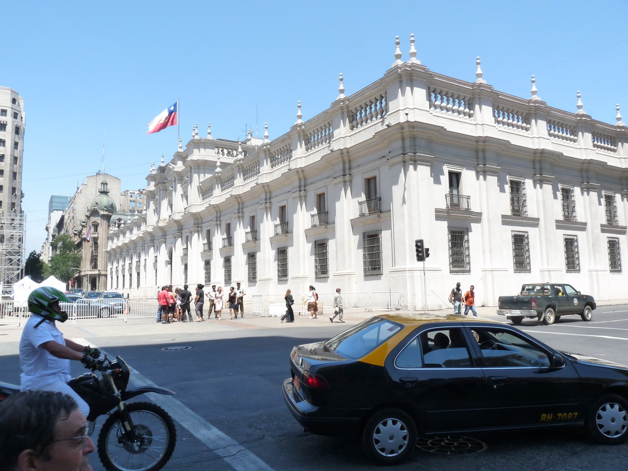 Nous allons voir la Moneda, palais présidentiel, mais interdit d’entrer