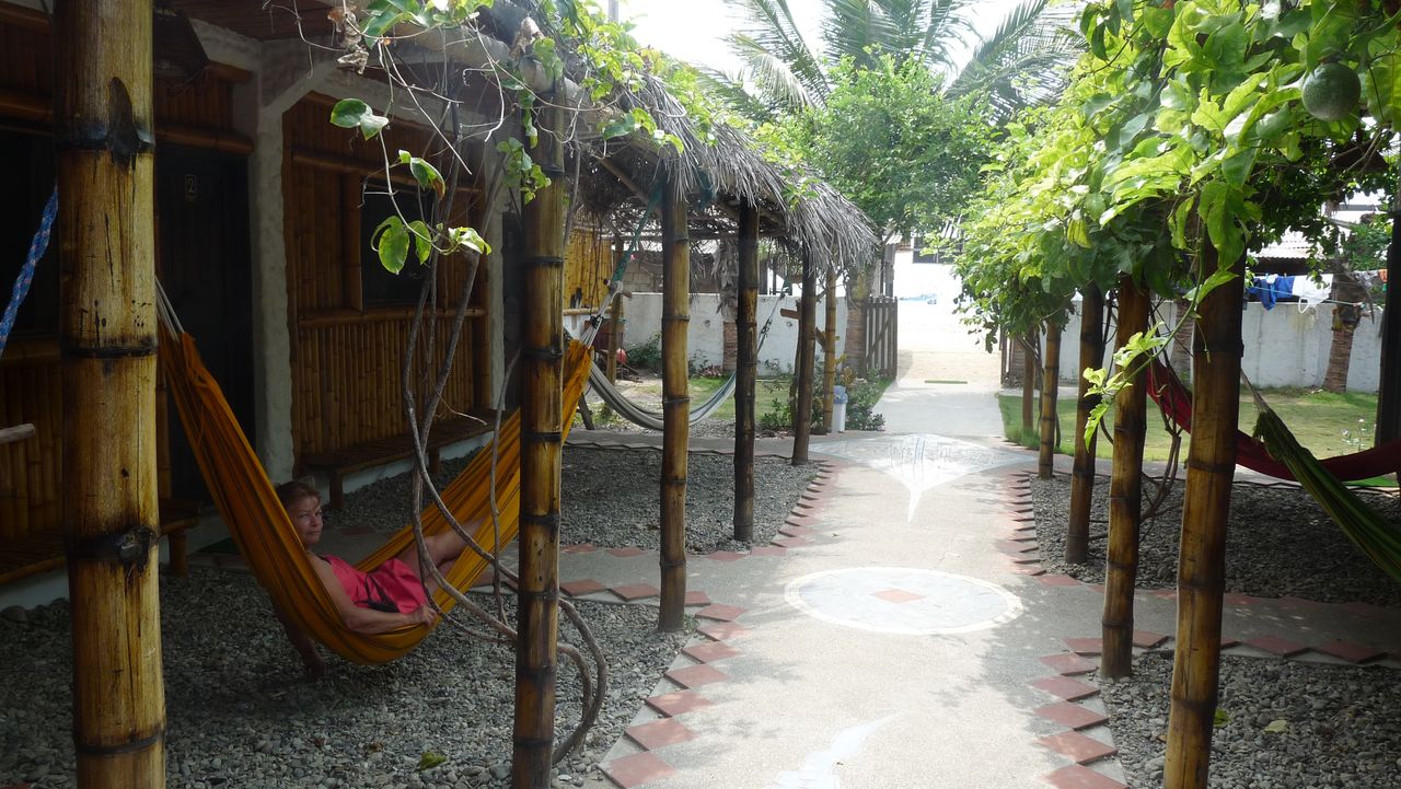 Nous prenons le bus en direction de Ayangue où nous prenons possession de notre nouvelle demeure : hospidaje el Ohim, bâtie uniquement en bambou jusqu’au pied du lavabo. Atmosphère très agréable petite cour aménagée et avancées avec hamacs. Nous sommes dans une crique directement en front de mer.